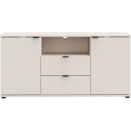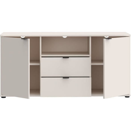 Meuble TV - GANYMEDE - Sable - 2 portes, 2 tiroirs, 1 niche - 129,8 x 41,3 x 63,1 cm