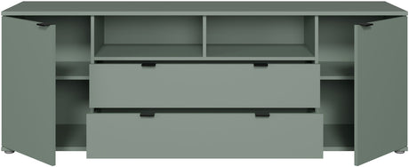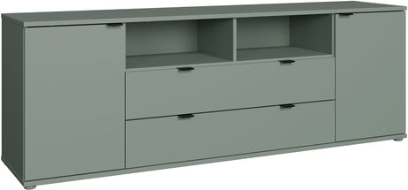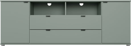Meuble TV - GANYMEDE - Sauge - 2 portes, 2 tiroirs, 2 niches - 179,8 x 41,3 x 63,1 cm