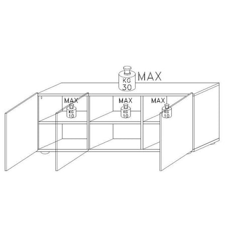 Meuble TV - Blanc Laqué brillant - L 181 x P 43 x H 57cm - PARIGI