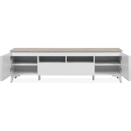 Meuble TV Bertrix 56A - Décor travertin / blanc - Panneaux de particules - 177 x 51,5 x 40 cm