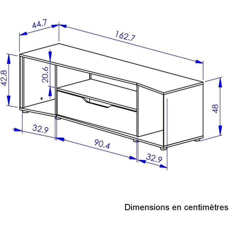 Meuble TV LINEAS - MÈlaminÈ chene - 2 portes + 1 tiroir + 1 niche - L180 x P44 x H55 cm