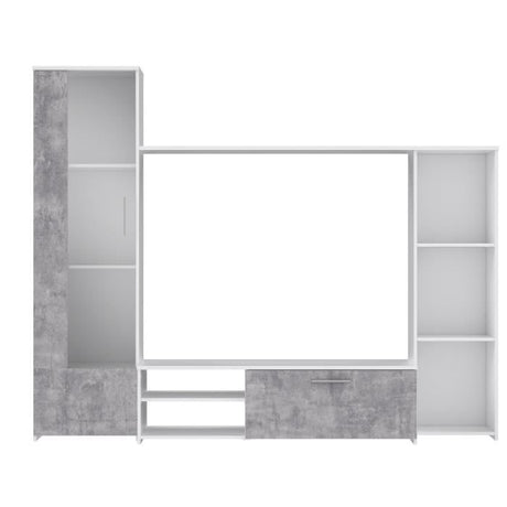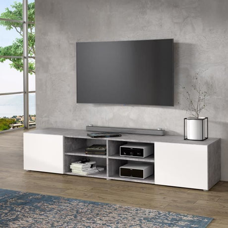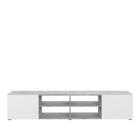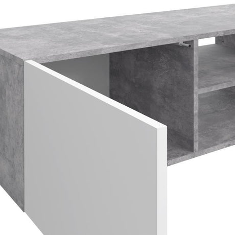 Meuble TV PILVI - Blanc et bÈton clair - L 180 x P 42 x H 37 cm