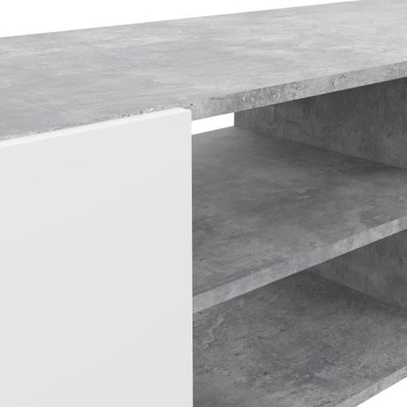 Meuble TV PILVI - Blanc et béton clair - Contemporain - L 120 x P 42,1 x H 31,8 cm