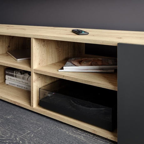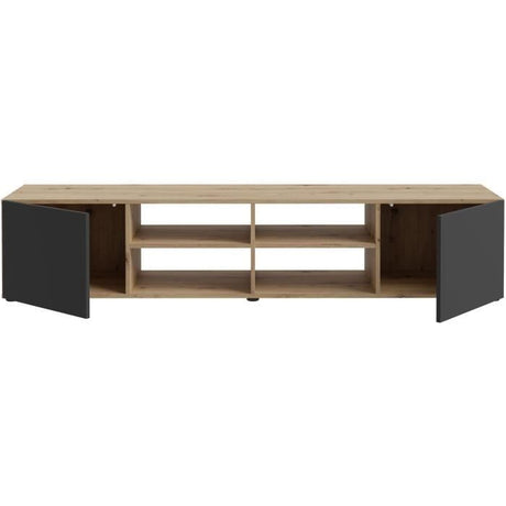 Meuble TV NESS - 1 abattant 2 niches - DÈcor graphite et Chene - L 155 x P 43 x H 47 cm