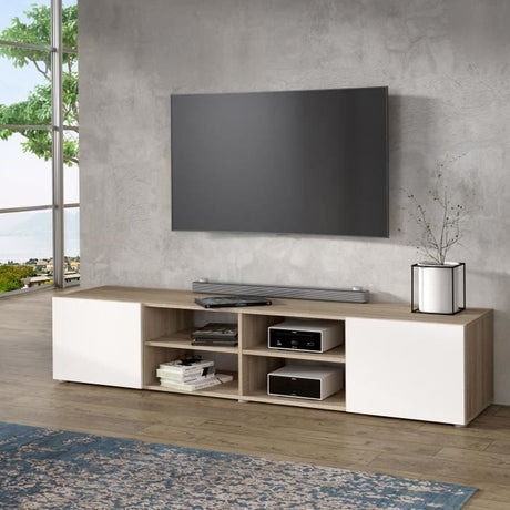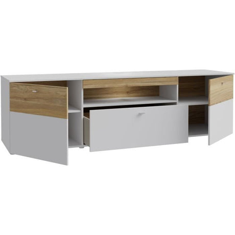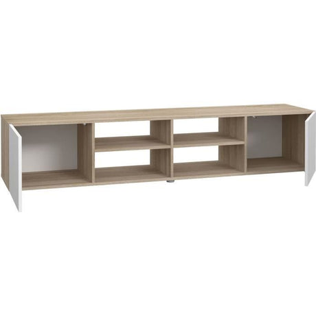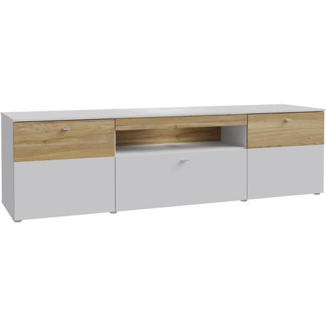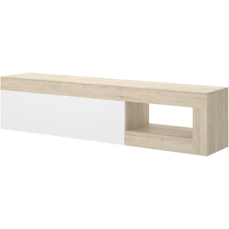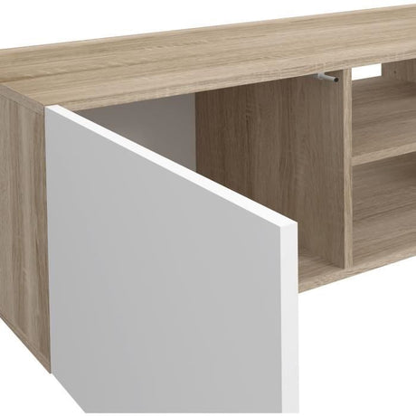 Meuble TV PILVI - Blanc et chene - L 180 x P 42 x H 37 cm