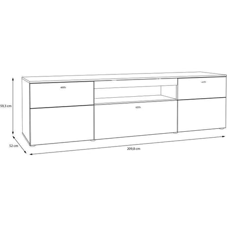 Meuble TV bas - LEBO - Chene / Blanc Brillant - 204 x 42 x 48 cm