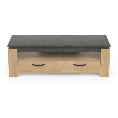 Meuble TV MOOD 2 portes et 2 tiroirs - MÈlaminÈ bois vieilli et gris mat - L 180 x 47 x 66 cm