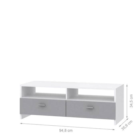 Meuble TV PILVI - Blanc et gris mat - Contemporain - L 95 x P 36 x H 34,5 cm