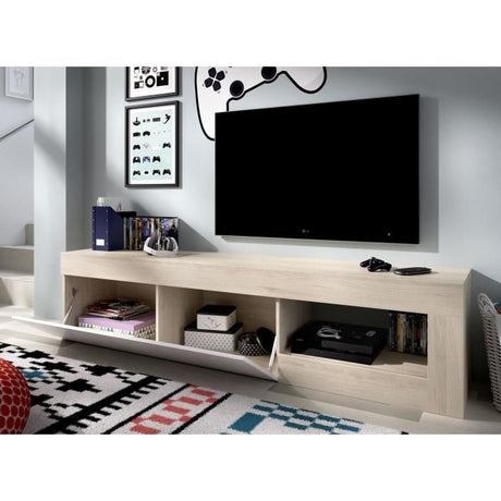 €242,92Precio unitario /Agotado Meuble TV bas - LEBO - Chene / Blanc Brillant - 204 x 42 x 48 cm