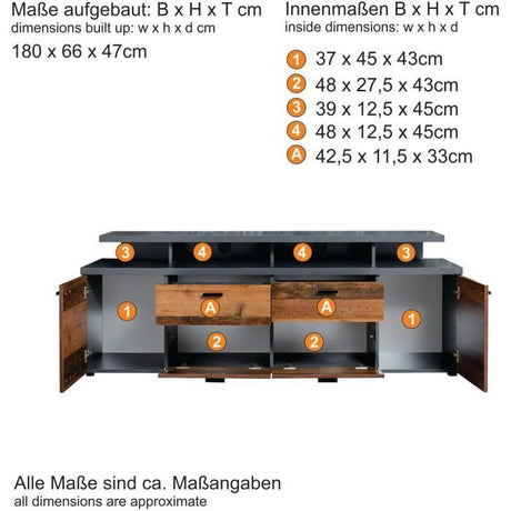 Meubles TV/Hifi Lowboard - Décor noir - L153,5 x H52 x P31,5 cm - Fabriqué en Allemagne