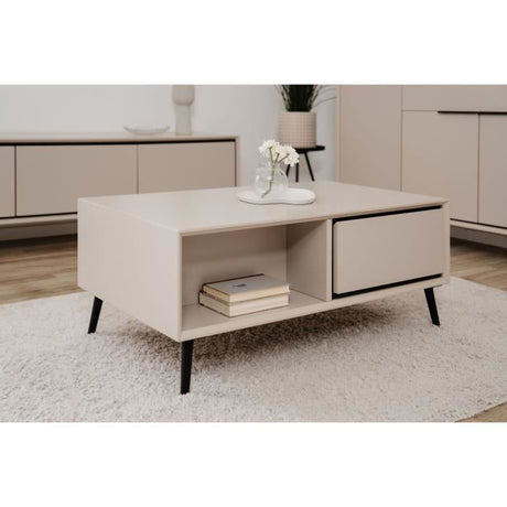 Table basse - ARONA - Rectangulaire - Capuccino / Noir - Sur pieds - 94 x 40 x 55 cm