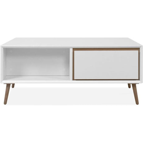 Table basse - ARONA - Rectangulaire - Blanc / Chene artisan - 94 x 40 x 55 cm