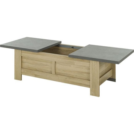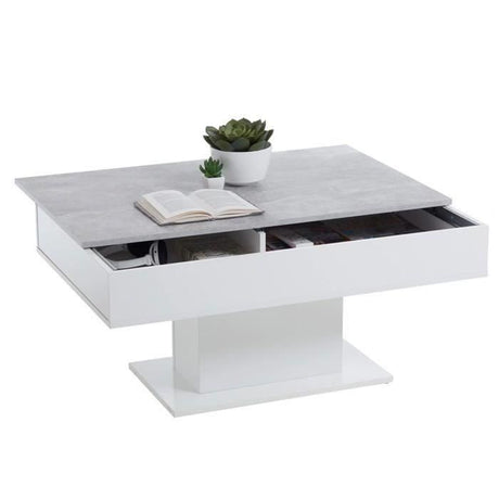 Table basse - Blanc et gris béton - Relevable - L 100 cm x P50 x H44cm - HAPPY