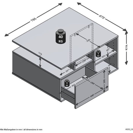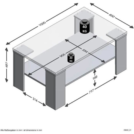 €75,68Precio unitario /Agotado Table basse - Décor Blanc et Chene Artisan - L82 x H69,1 x P10,3 cm - Fabriqué en Allemagne