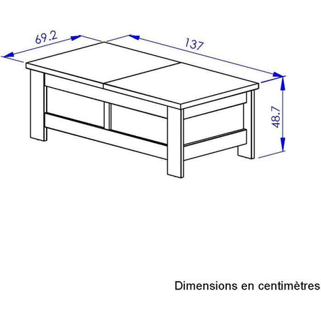Table basse - DÈcor chene et noir - Relevable - L 100 x P 50 x H 44 cm - HAPPY