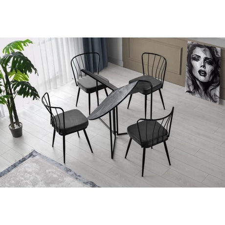 Table a manger pliable - YAPRAK - Anthracite - Ronde - 4 personnes - 100 x 100 x 72 cm