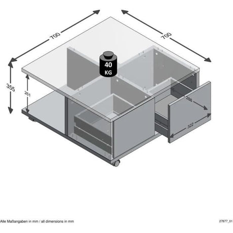 Table basse coulissante - L74,5 x H38,5 x P49,5 cm - FabriquÈ en Allemagne - SLIDE