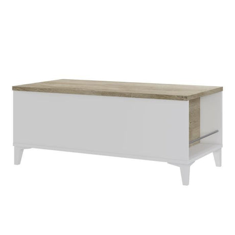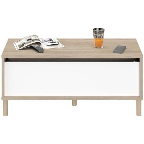 Table basse avec plateau relevable - Blanc/Chene - L 100 x P 50/72 x H 42/55 cm - EVAN