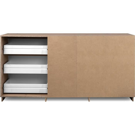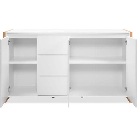 Buffet - SKELPE - Blanc mat et chene - 3 portes + 3 tablettes - 152,6 x 42 x 78,5 cm