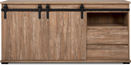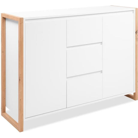 Buffet - DENVER - Chene artisan / Blanc - 2 portes - 3 tiroirs - 120 x 40 x 88 cm