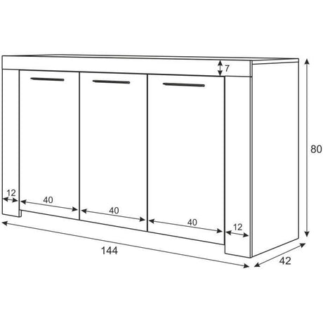 Buffet - Blanc laquÈ brillant - 3 Portes - PARIGI - L 181 x P 42 x H 84 cm