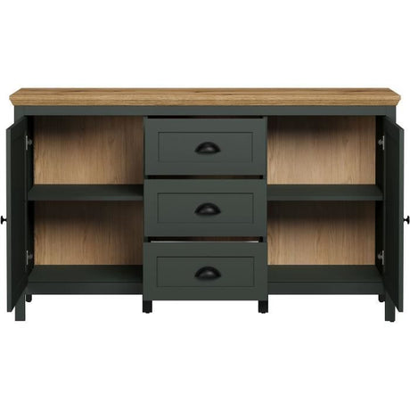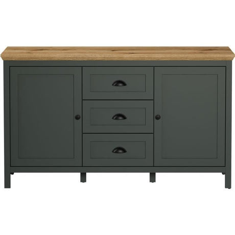 €270,00Precio unitario /Agotado Buffet - Stanton - Vert profond / chene naturel - 2 portes - 3 tiroirs - 146cm x 45cm x 86cm