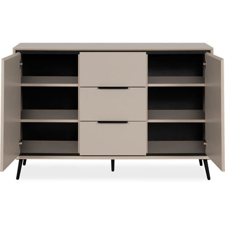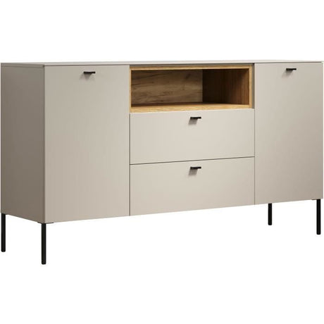 Buffet - ARONA 01B - Beige / Noir - 2 portes, 3 tiroirs - 135 x 90 x 38 cm