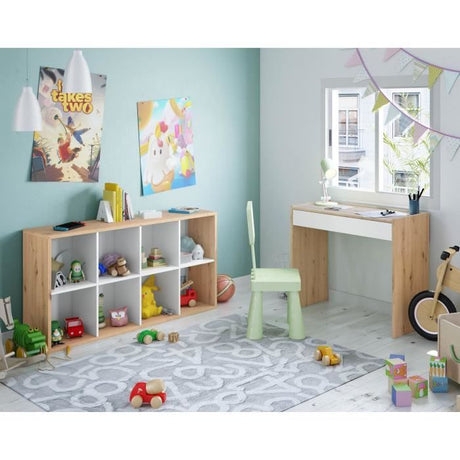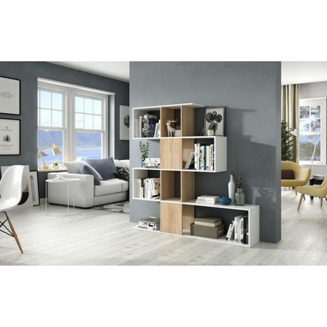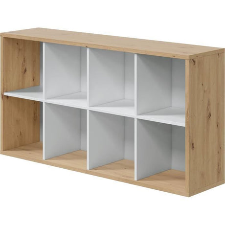 Bibliotheque Ètagere NOA - Blanc et chene - 8 cases - 137x71,5x33 cm