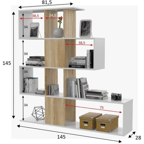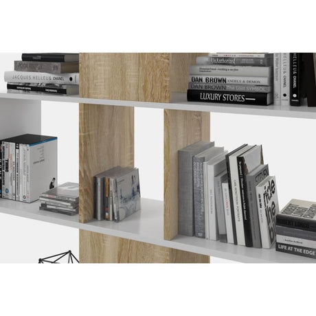 Bibliotheque Ètagere ZIGZAG - Chene et blanc - 4 niveaux - MÈlamine - 145 x 145 x 28 cm