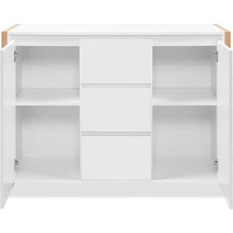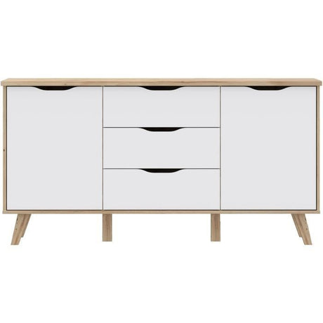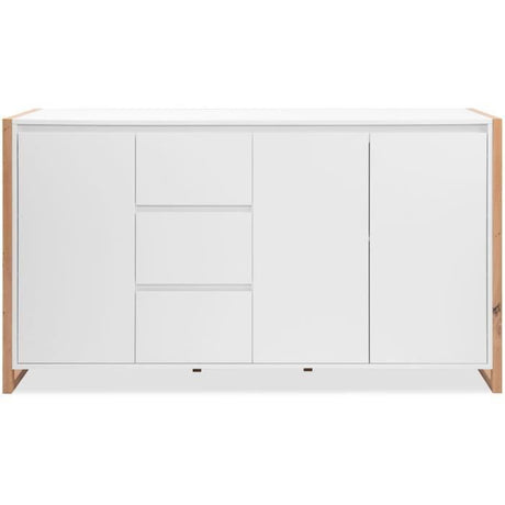 Buffet 150 cm - VANKKA - Chene / Blanc mat - 2 portes - 3 tiroirs