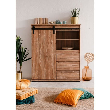 Buffet - MARRAKESCH 53A - Chene - 1 porte - 3 tiroirs - Style industriel-loft