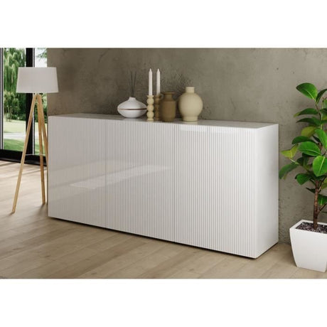 Buffet - Blanc laqué brillant - 3 Portes - PARIGI - L 181 x P 42 x H 84 cm