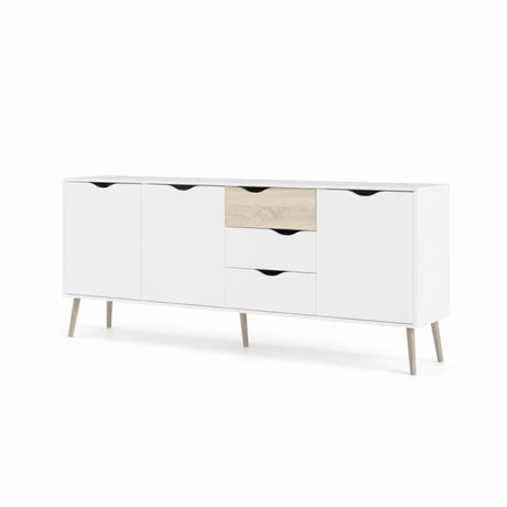 Buffet - DENVER - Chene artisan / Blanc - 3 portes - 3 tiroirs - 160 x 40 x 88 cm