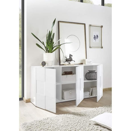 Buffet 3 portes 181 cm - Blanc laquÈ brillant - Style contemporain - MILANO