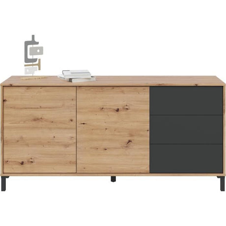 Buffet bas - Décor chene brossé et noir mat - Contemporain - WAYNE - L 160,7 cm