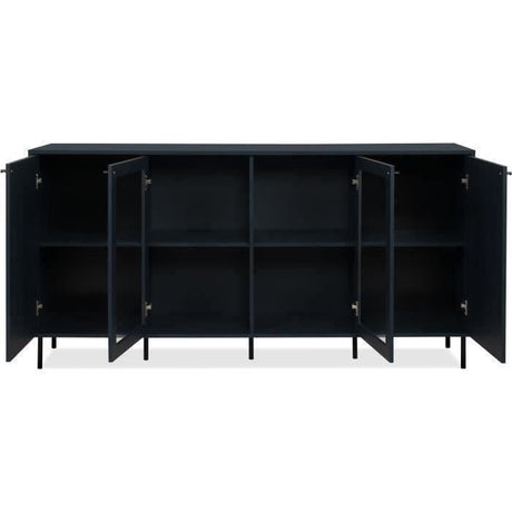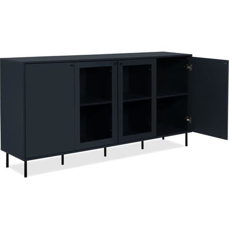 Buffet bas - CARACAS - Décor bleu navy - 2 portes vitrées + 2 portes - L180 x H90 x P40 cm