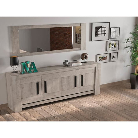 Buffet bas - Boston - Chene gris clair - 4 portes - 2 étageres - Gami