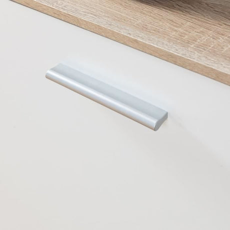 €230,43Precio unitario /Agotado Buffet bas PILVI - 2 portes et 4 tiroirs - Blanc et chene sonoma - L 122,6 x P 34,2 x H 81,1 cm