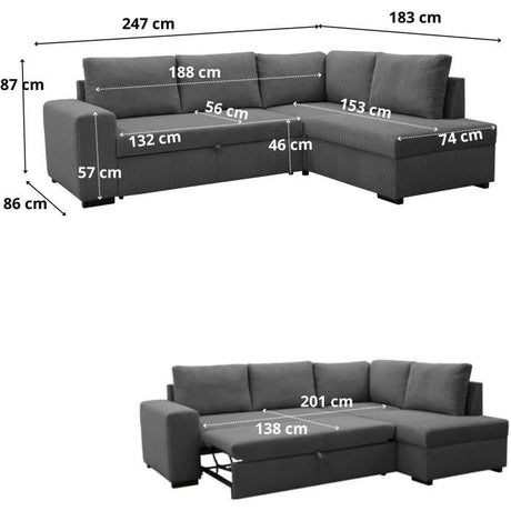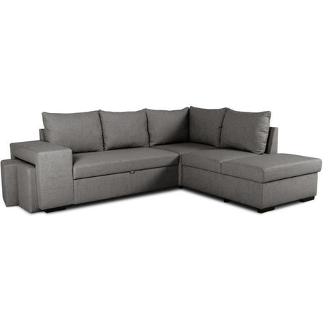 Canapé d'angle fixe 4 places BOB - Tissu souris - Réversible - L 197 x P 117 x H 65 cm