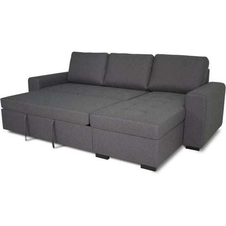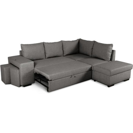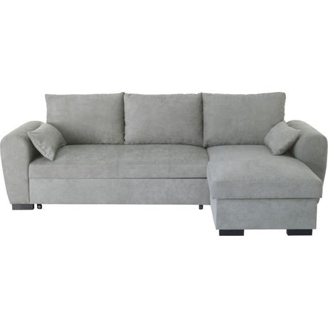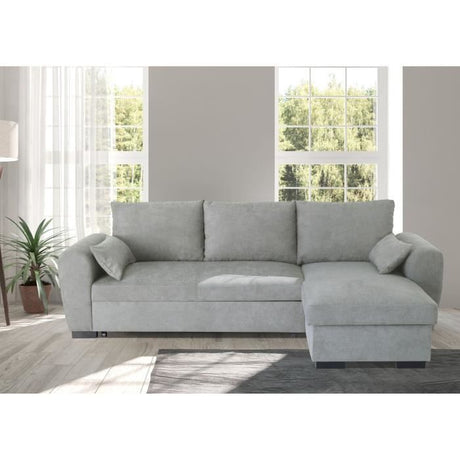 Canapé d'angle convertible réversible CATHY 3 places - Tissu Gris - L 242 x P 155 x H 85 cm