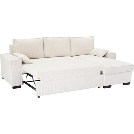Canapé d'angle droit 4 places - PAUL in cord - Tissu Beige - 216 x 141 x 79 cm - Fabriqué en Ukraine