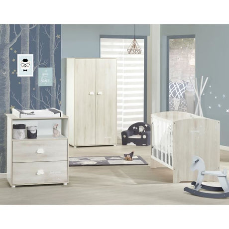 Chambre bébé complete - Lit 120x60 et commode a langer - BABY PRICE - SMILE - Chene silex