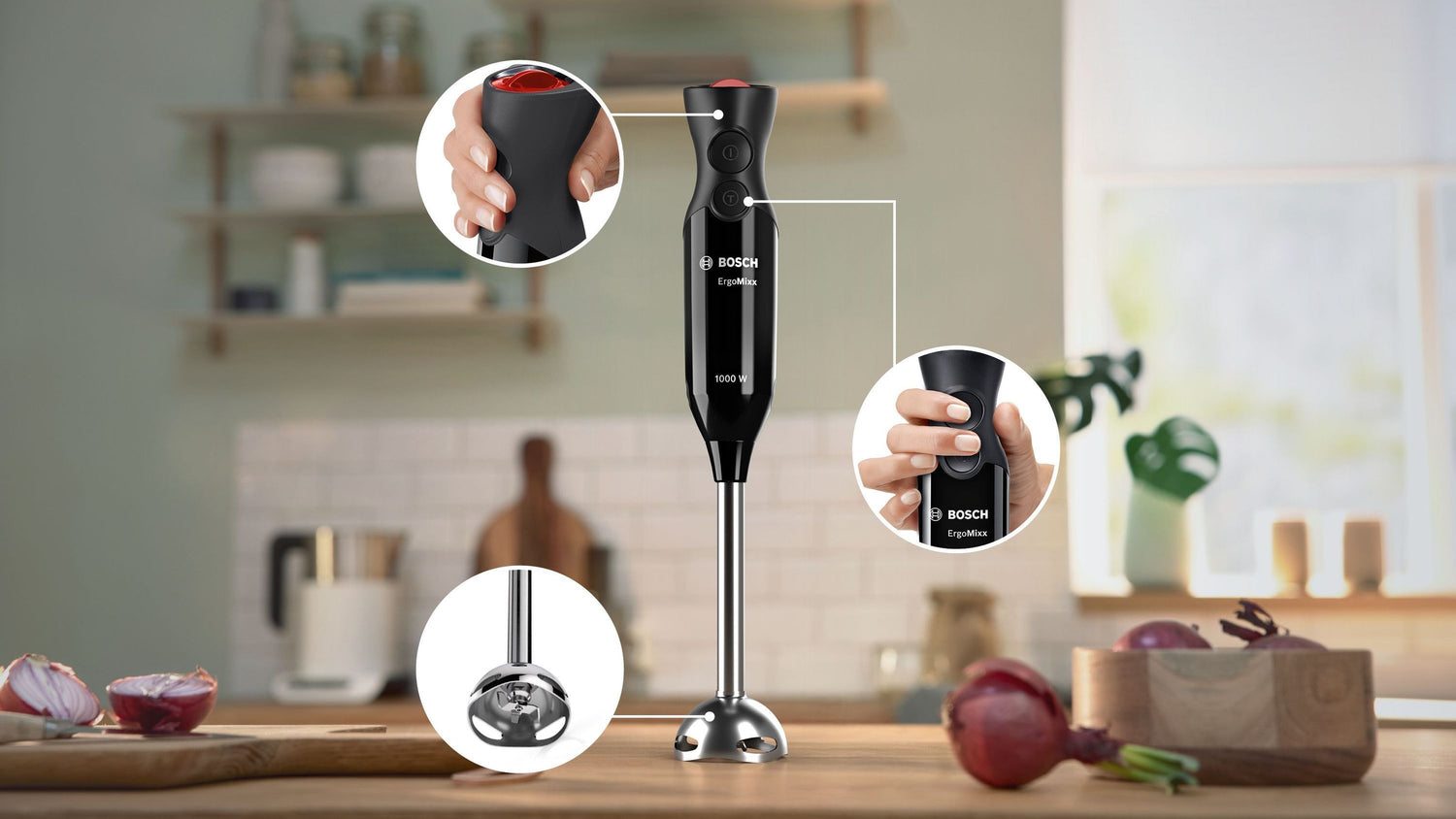 Mixeur plongeant - BOSCH - MS6CB6110 ErgoMixx - 1000 W - 12 vitesses + turbo - Bol mixeur - Noir