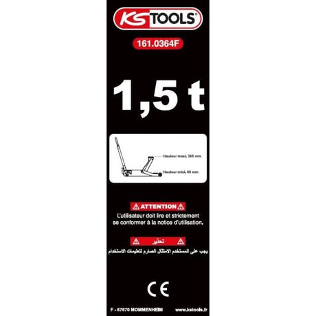 €21,15Precio unitario /AgotadoMuy poca disponibilidad (4 unidades)Cric hydraulique - KS TOOLS - 161.0362F - Cric tout terrain - Outillage mecanique auto 3t - Noir