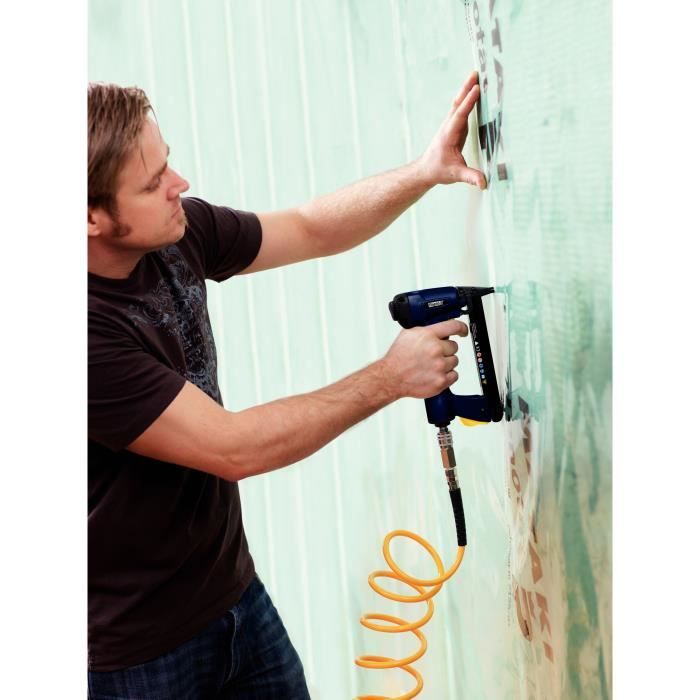 L'agrafeuse pneumatique RAPID PS111 est idéale pour les travaux nécessitant une cadence importante, tels que la pose de matériaux isolants, de bâches en plastique, de fixations d'emballages carton et autres. Elle est compatible avec les agrafes N°140 de 6 a 16 mm et possede un corps en magnésium pour une efficacité optimale.