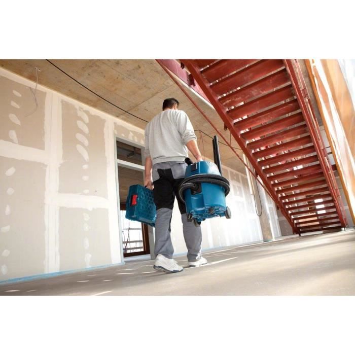 L'aspirateur Bosch Professional GAS 20 L SFC de classe L possede un pouvoir aspirant ÈlevÈ gr‚ce a sa turbine d'aspiration 1200 W. Il est redoutablement efficace pour de nombreuses applications en milieu sec ou humide. Le nettoyage du filtre est aisÈ gr‚ce au systeme de nettoyage de filtre semi-automatique (SFC).