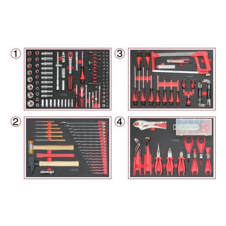 Servante d'atelier - Pleine (201 outils) - 7 tiroirs - DEFPRO - Acier - Rouge