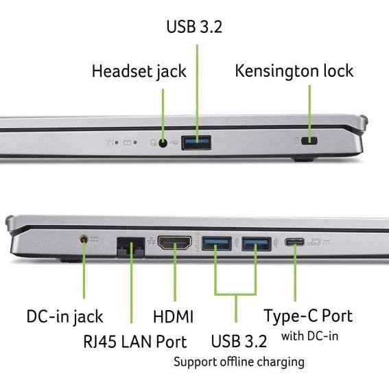 PC Portable Acer Aspire 3 A315-44P-R1NV - 15.6 FHD - AMD Ryzen 5 5500U - RAM 8Go - 512Go SSD - Windows 11 - AZERTY