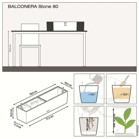 LECHUZA Jardiniere BALCONERA Stone 80 ALL-IN-ONE Beige