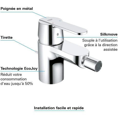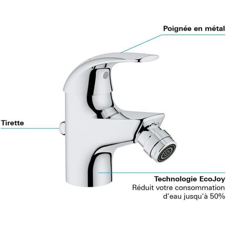 €142,03Precio unitario /AgotadoMuy poca disponibilidad (3 unidades)Mitigeur monocommande bidet - GROHE - Start Flow - Hauteur sous bec 46mm - Economie d'eau - ChromÈ